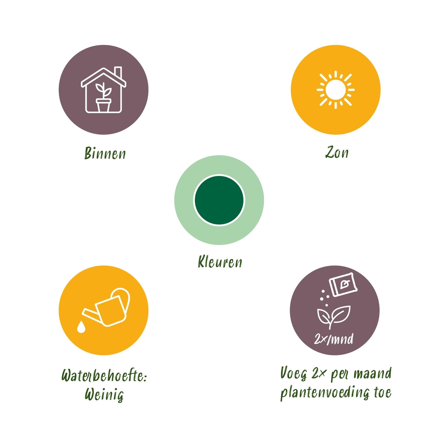 Door zijn unieke kleuren en vormen kan deze plant ook dienen als een prachtig gesprekstuk in je woonruimte. Het is een ideale keuze voor mensen die op zoek zijn naar een onderhoudsarme plant die ook visueel aantrekkelijk is.
