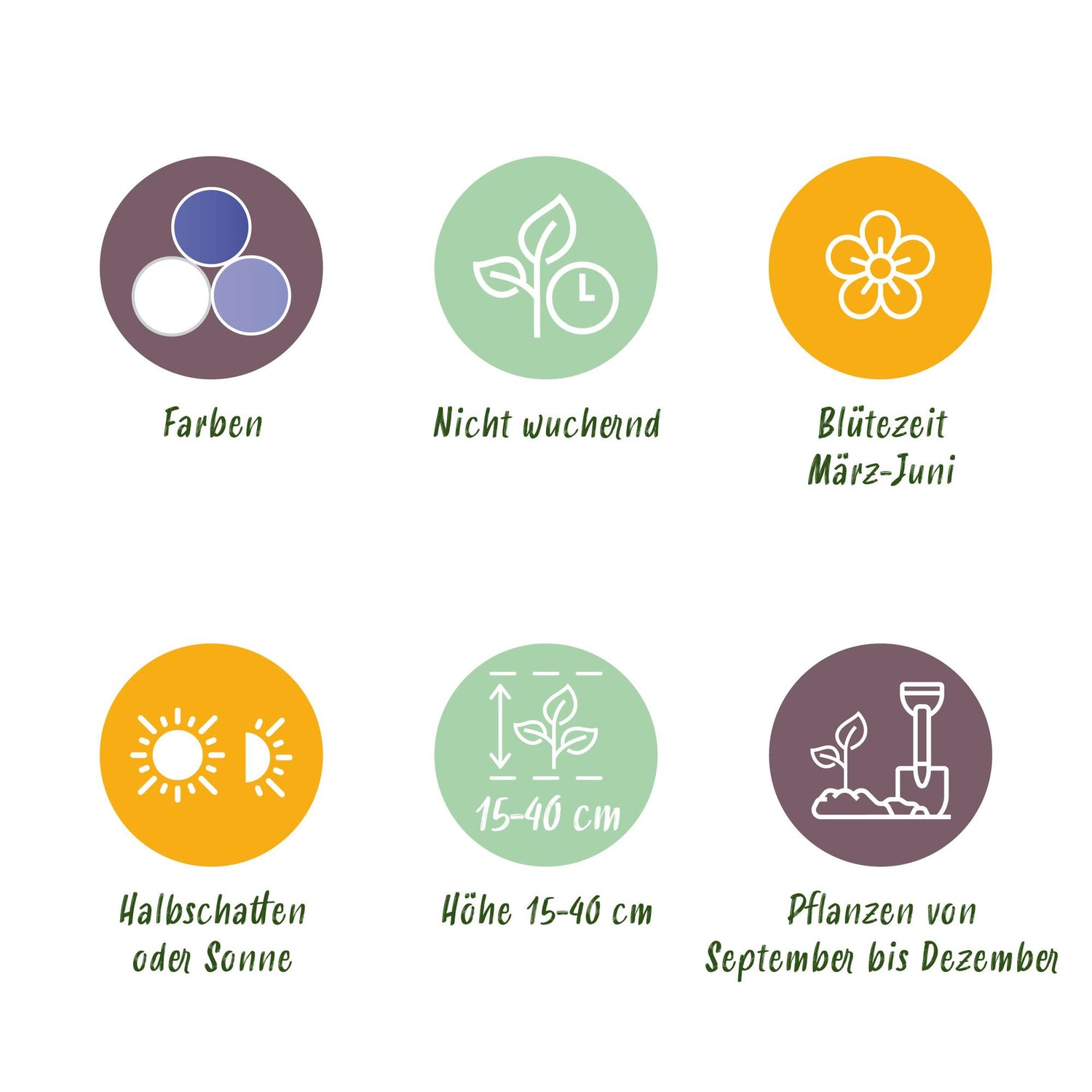 Green boutiQ - Bloembollen - Bulb Garden Blue mix - Diversen soorten - Kleur Blauw - 125 stuks - Gift Verpakking