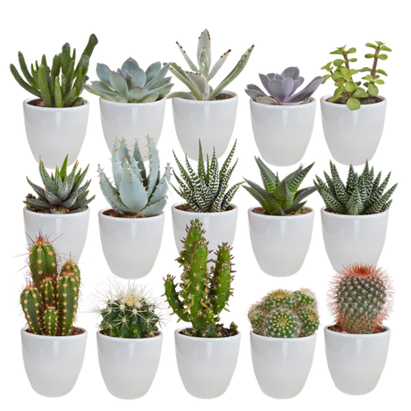 Prix habituel €33,95Prix unitaire /IndisponibleEn stockCactus en vetplanten mix 5.5 cm | 15 stuks - in witte pot