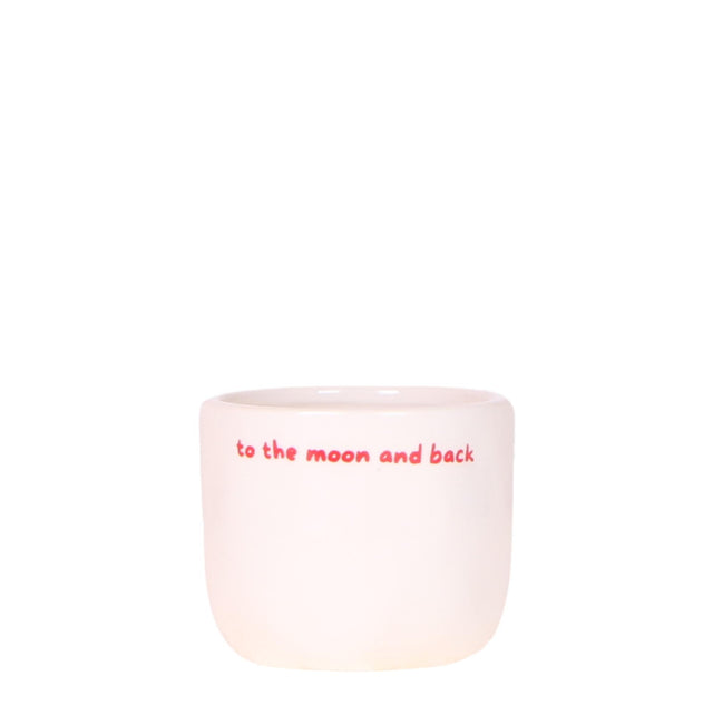 Dites-le avec un pot ! Le pot "to the moon and back" est la manière parfaite de faire fleurir votre amour – au sens propre comme au figuré. Ce pot en céramique élégant et brillant est subtilement conçu en blanc doux avec un détail rouge "to the moon and back" écrit à la main. Idéal à offrir à votre bien-aimé(e), ou simplement pour apporter une touche d'amour à votre propre intérieur.