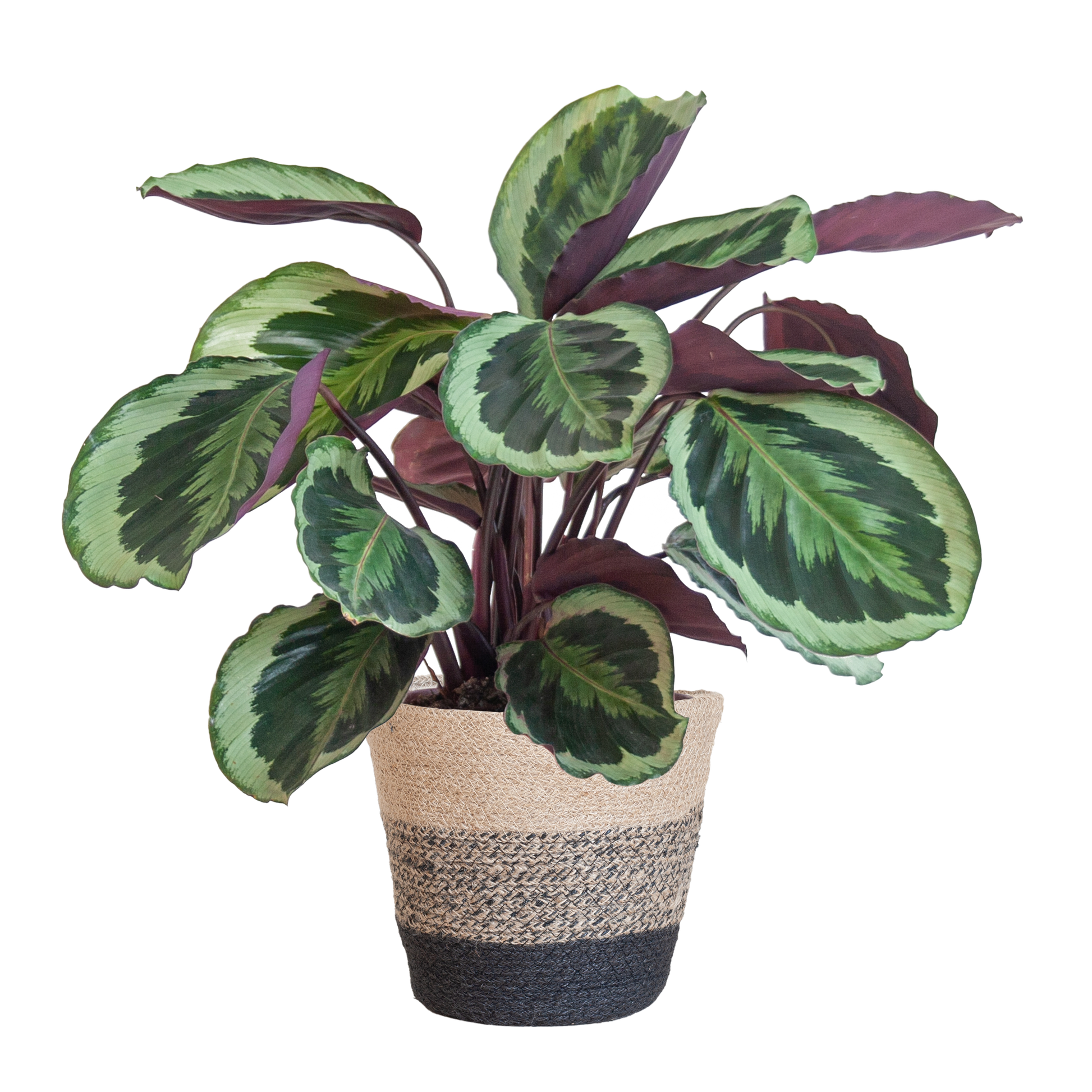 De Calathea is een opvallende groene kamerplant die bekend staat om zijn unieke en kleurrijke bladpatronen. Deze huisplant heeft vaak een combinatie van groen met donkere en lichte tinten en de onderkant van het blad is vaak prachtig paars. Dit maakt de Calathea een echte blikvanger in elk interieur. Deze kamerplant komt oorspronkelijk uit de tropische gebieden van Zuid-Amerika, waar hij groeit in de schaduwrijke onderlaag van het regenwoud. In zijn natuurlijke habitat profiteert de Calathea van de vochtige en beschutte omgeving, wat iets is om rekening mee te houden bij de verzorging thuis. Deze plant wordt soms ook wel ‘Medaillon’ genoemd, vanwege de ronde vorm van de bladeren die lijken op een medaillon. Hoewel de verzorging van deze kamerplant redelijk eenvoudig is, staat de Calathea bekend als een beetje een diva onder de kamerplanten. Hij heeft specifieke behoeften wat betreft licht en vochtigheid, maar met een beetje aandacht en zorg kan iedereen genieten van zijn prachtige bladeren. De Lissabon plantenmand is een stijlvolle, duurzamer geproduceerde mand van jute. Met zijn natuurlijke tinten is deze plantenmand goed te combineren met allerlei soorten kamerplanten. Deze Terima Kasih plantenmand is duurzamer en verantwoordelijk geproduceerd. De mand is gemaakt van jute, een biologisch afbreekbare plant, die met de hand is gevlochten. Bij de productie worden geen fossiele brandstoffen gebruikt. Terima Kasih zorgt ervoor dat mensen in Azië een goede baan kunnen krijgen. Medewerkers worden jaarrond van werk voorzien, krijgen twee verse maaltijden per dag én moeders hebben aangepaste werktijden.