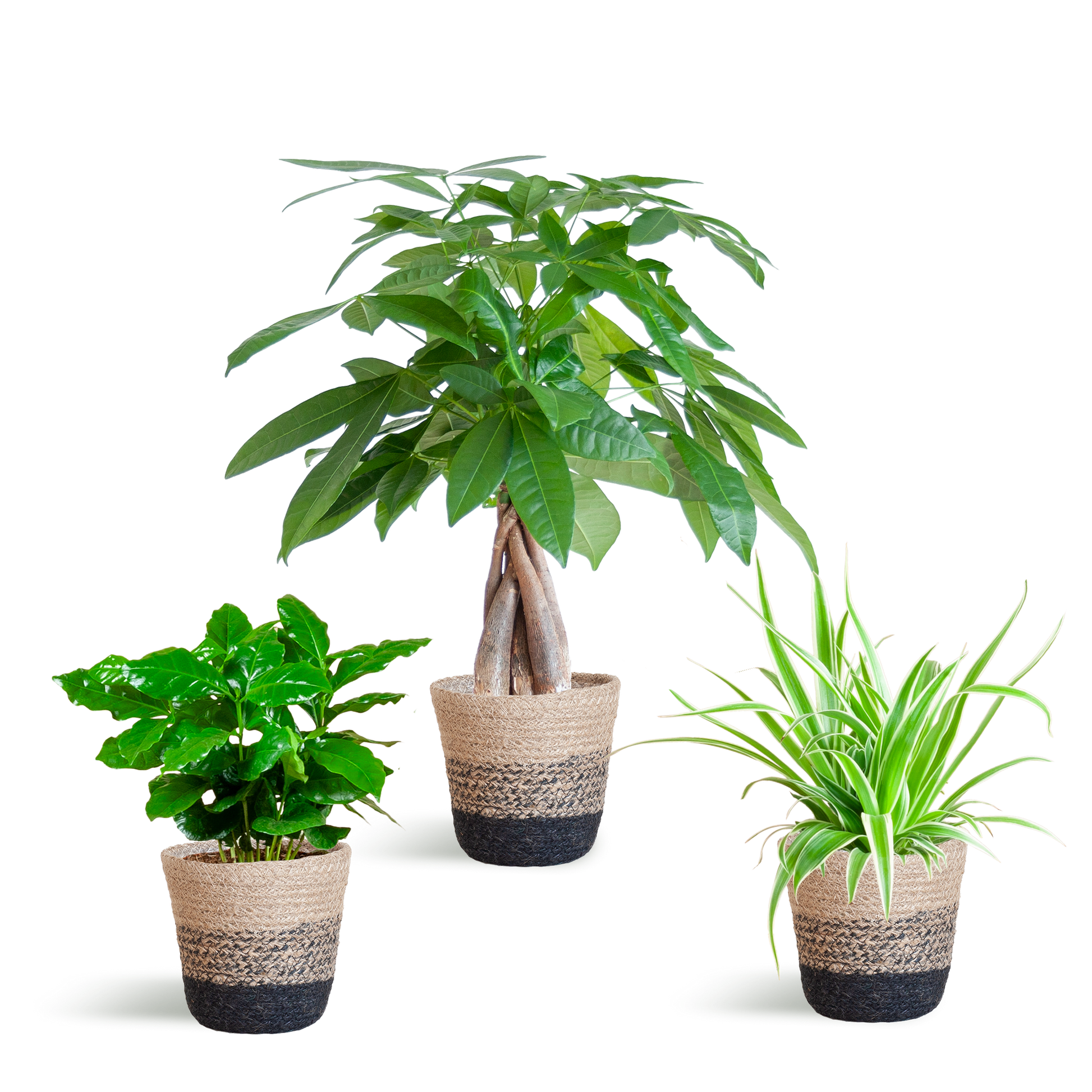 Diervriendelijke Plantenset (3x groene kamerplanten in meerkleurige mand)