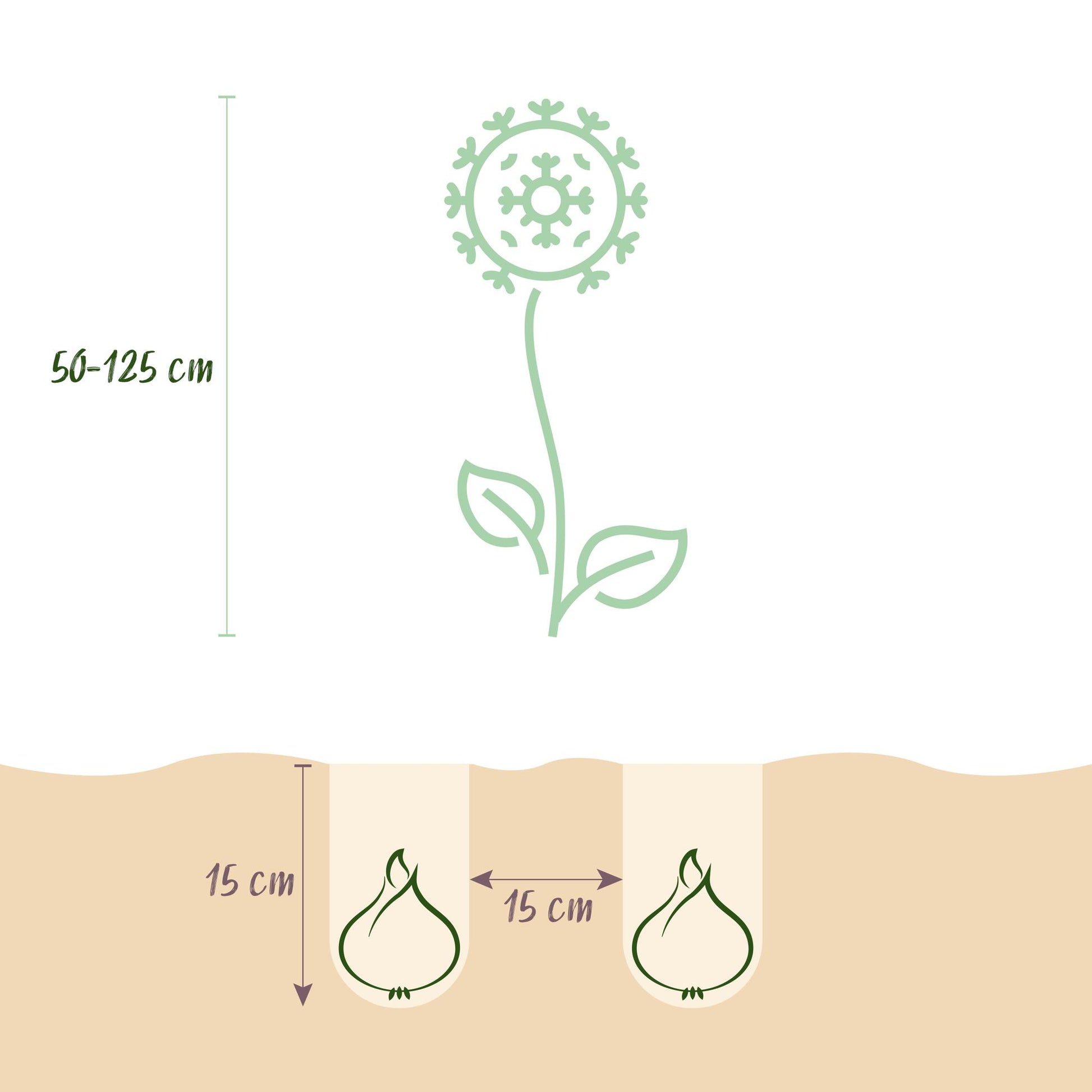 Deze mix is ideaal voor zowel borders als potten op uw balkon of terras. Laat de unieke vormen en kleuren van de Allium-bloemen uw buitenruimte opfleuren en creëren een vrolijke sfeer.