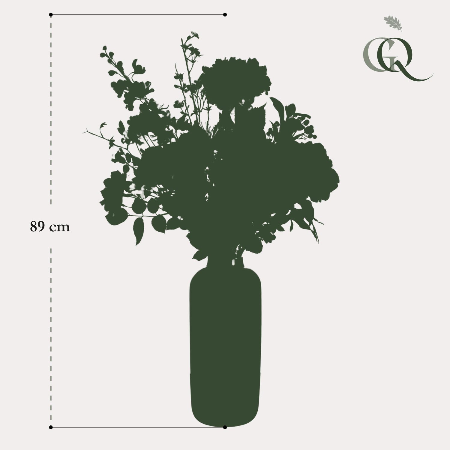 Geef je interieur een vleugje kleur en schoonheid met dit prachtige kunstboeket. De kunstbloemen zijn met liefde en vakmanschap samengesteld om een verbluffend resultaat te bereiken. Deze bloemen behouden hun frisheid en schoonheid zonder dat je ze water hoeft te geven.