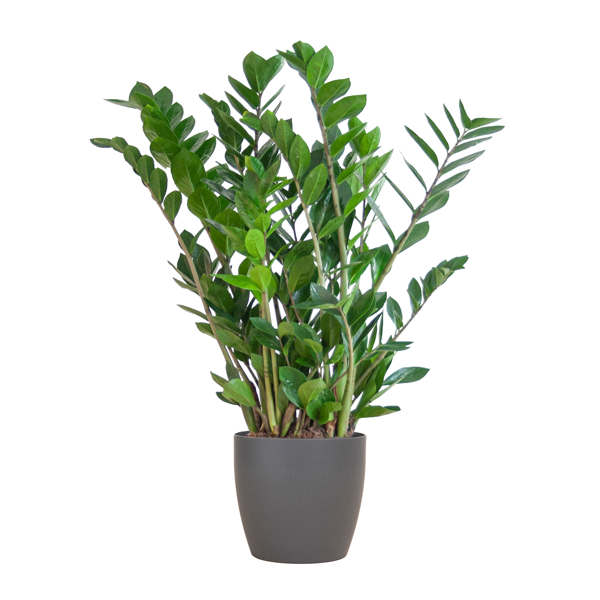 De ZZ-plant komt oorspronkelijk uit warme gebieden als Zanzibar, Kenia en Madagaskar. Deze kamerplant met lange stengels en zijn prachtige glimmende bladeren kan op elke standplaats worden neergezet (niet te donker). Een ideale plant voor de plantenliefhebbers met minder groene vingers of minder tijd. Als de Zamioculcas een keer geen water krijgt is dat niet zo erg. Hij groeit naar het licht, dus draai hem om de zoveel tijd voor een volle plant.
